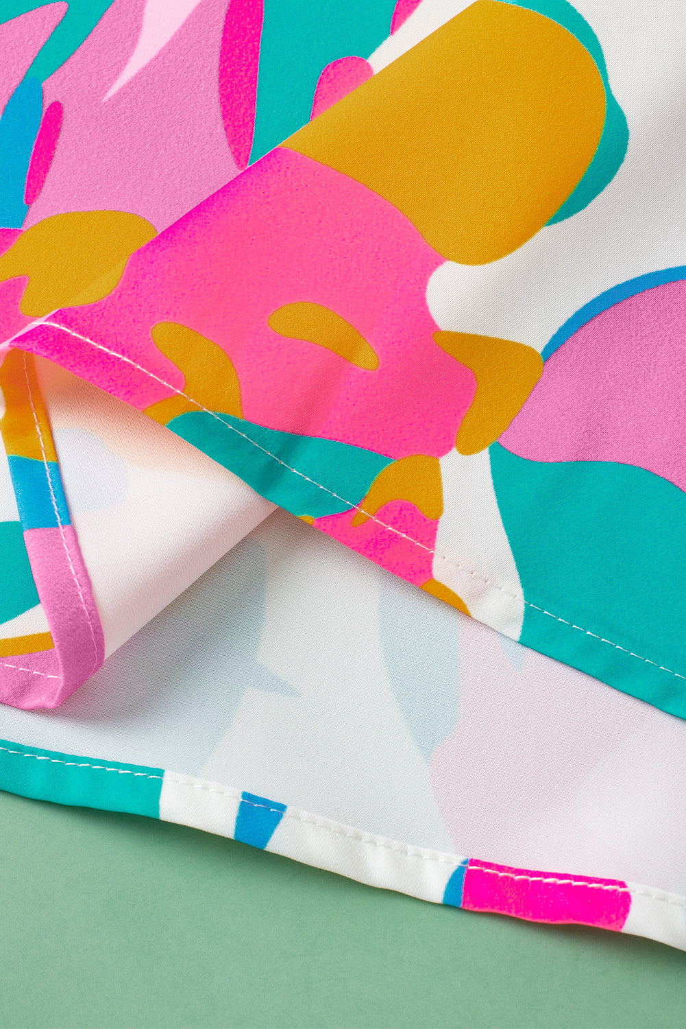 • Vibrant multicolor abstract print brings a bohemian flair to this blouse, perfect for adding a pop of color to any outfit.